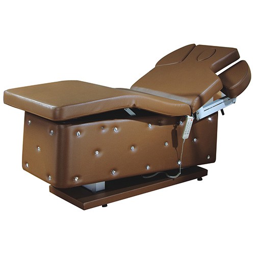 Комфортная для мастера и клиента, она оснащена 3 электроприводами, позволяющими регулировать высоту, наклон спинки и опору для ног с помощью педали, чтобы выполнять разные виды уходов (массаж, уход за лицом и телом, spa-уход). В комплекте съемный подголовник с отверстием для лица.